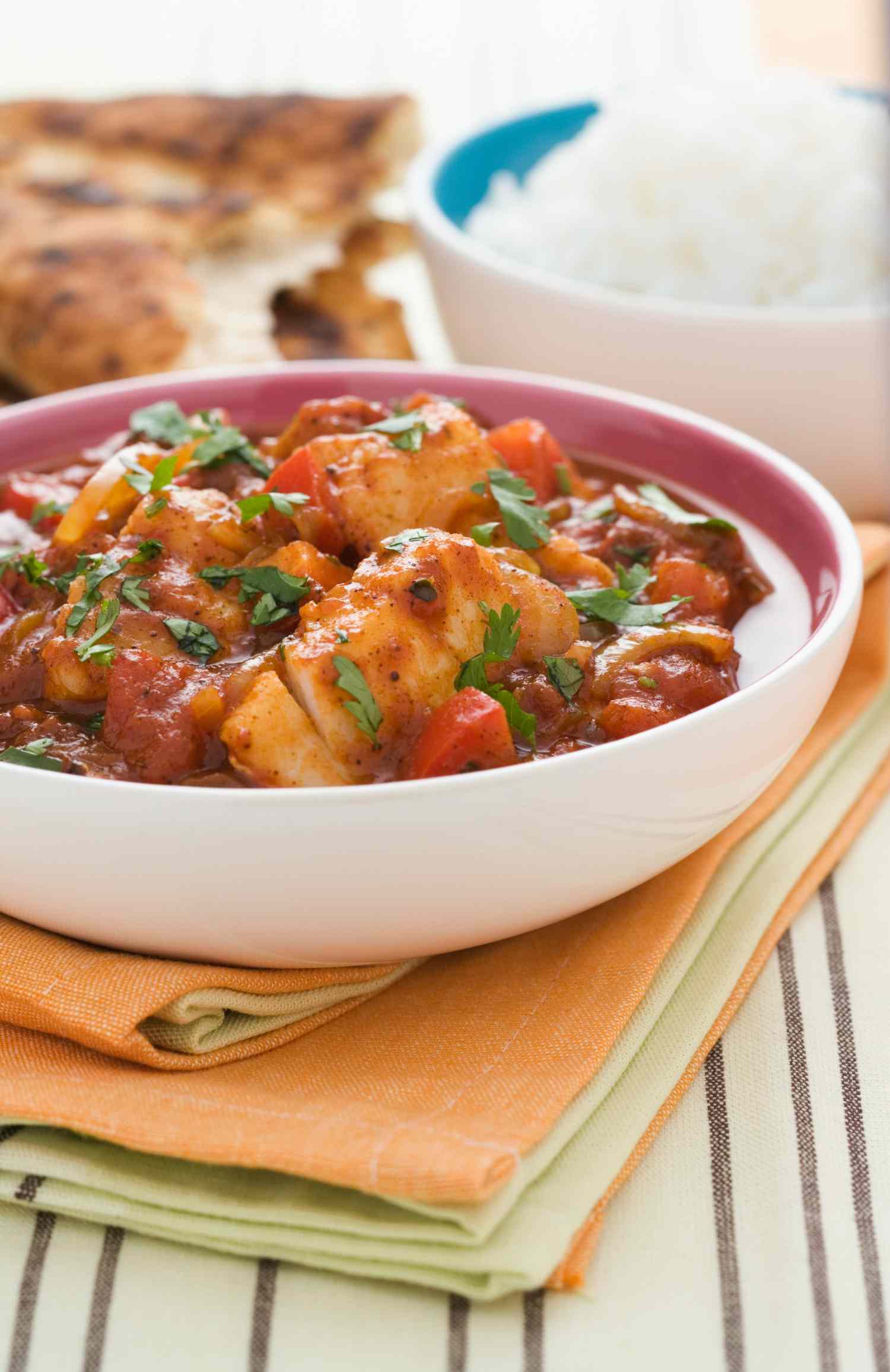 Fish cooked with onions, garlic, ginger, tomatoes cashews nuts, golden raisins,butter, cream and spices