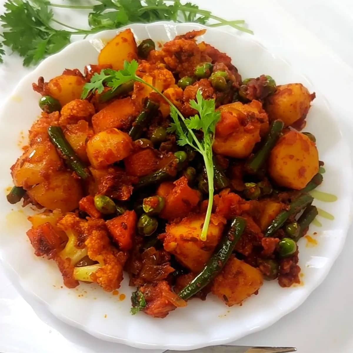 Fresh Mixed vegetables with onion tomato in ginger garlic curry